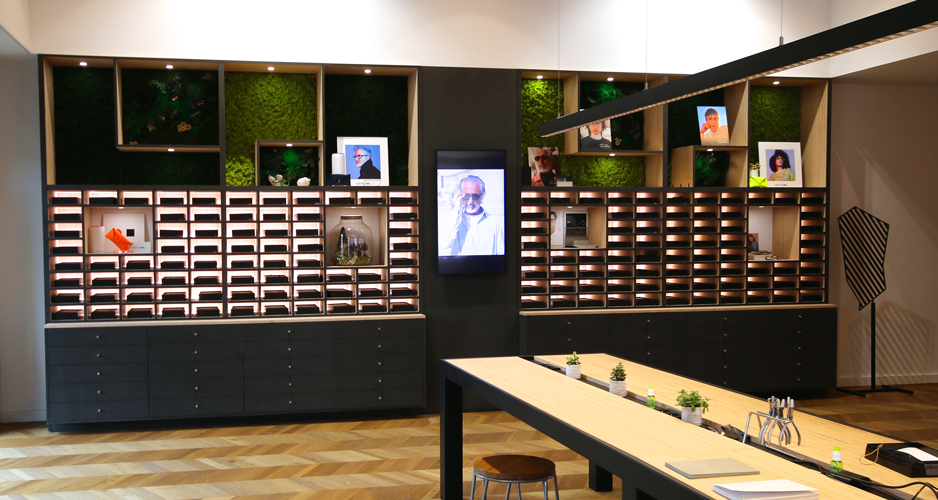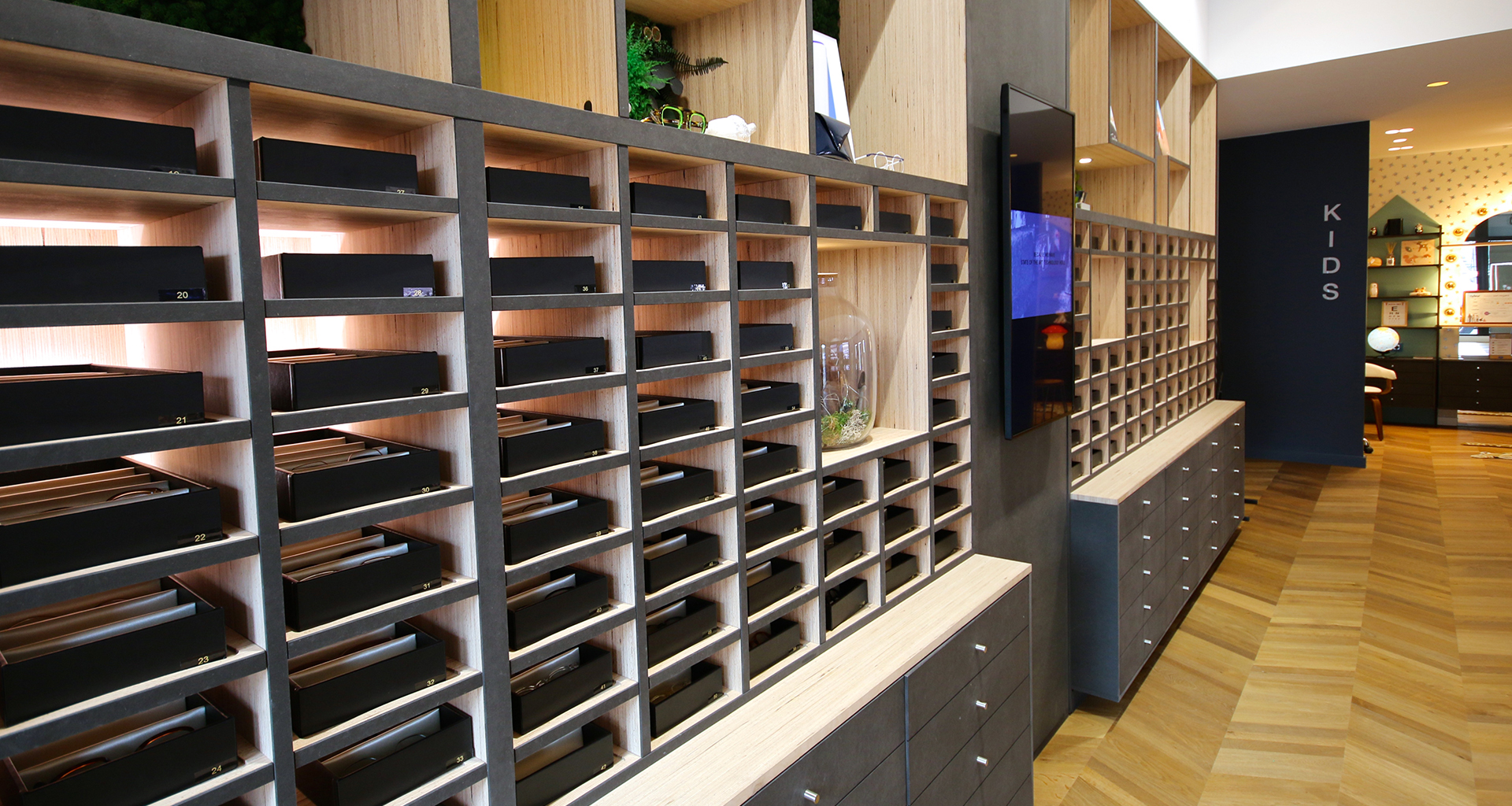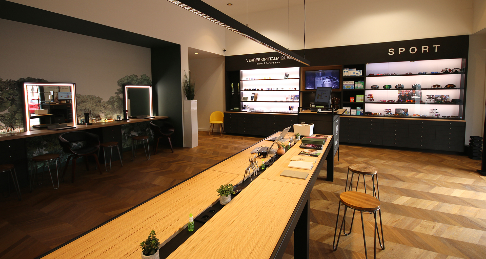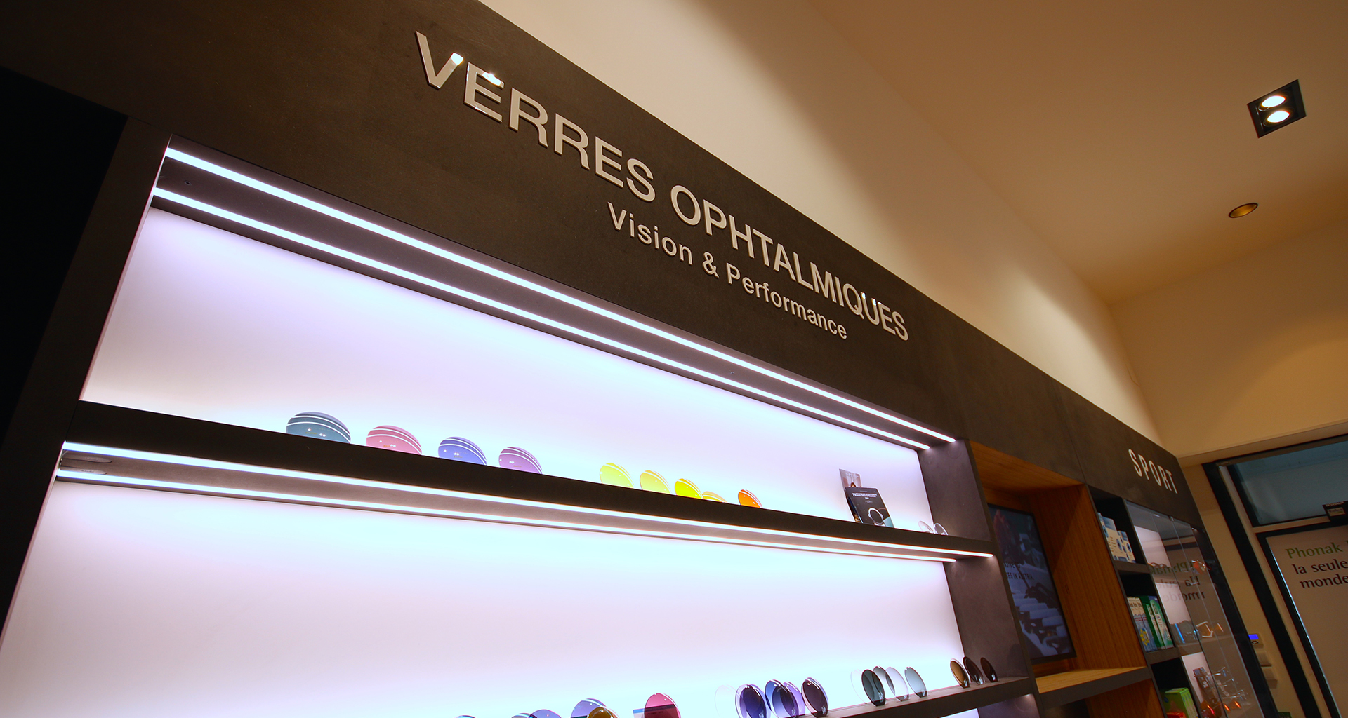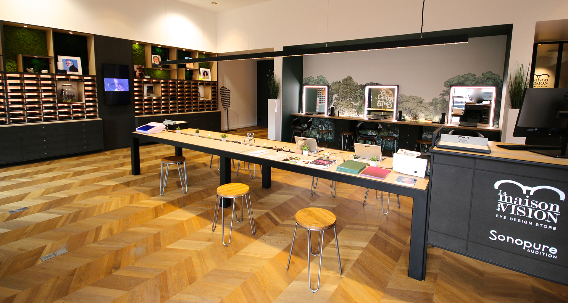 Fondée par un opticien-lunetier exigeant et passionné, LA MAISON DE LA VISION est un concept innovant qui propose des prestations de qualité grâce à une approche inédite et adaptée à chacun. Nous avons été contacté par Jacques pour sa troisième boutique, à Saint Gély du Fesc afin d’améliorer le concept d’agencement existant. Nous avons déterminé un cahier des charges très précis qui visait à proposer des espaces techniques et définis, le design et l’optimisation étaient les maitres mots. Il fallait se démarquer des magasins d’optique standard. L’essentiel de notre travail s’est orienté sur deux meubles gigantesques de 6 mètres de long et 3 m de hauteur. L’un est conçu avec une gestion automatisée de la luminosité de chacune des 148 niches. L’autre met en valeur tous éléments qui composent une paire de lunettes dans ce concept.